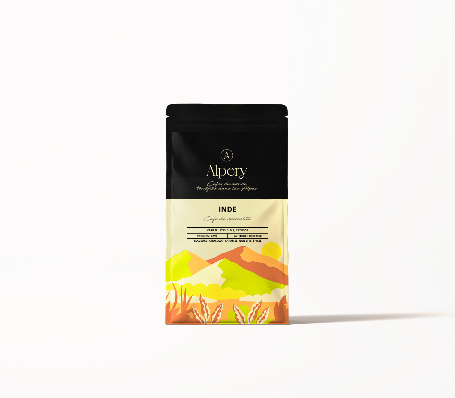 Un café indien structuré et gourmand, aux notes de chocolat, de caramel, de noisette et d'épices, pour une tasse chaleureuse et équilibrée.